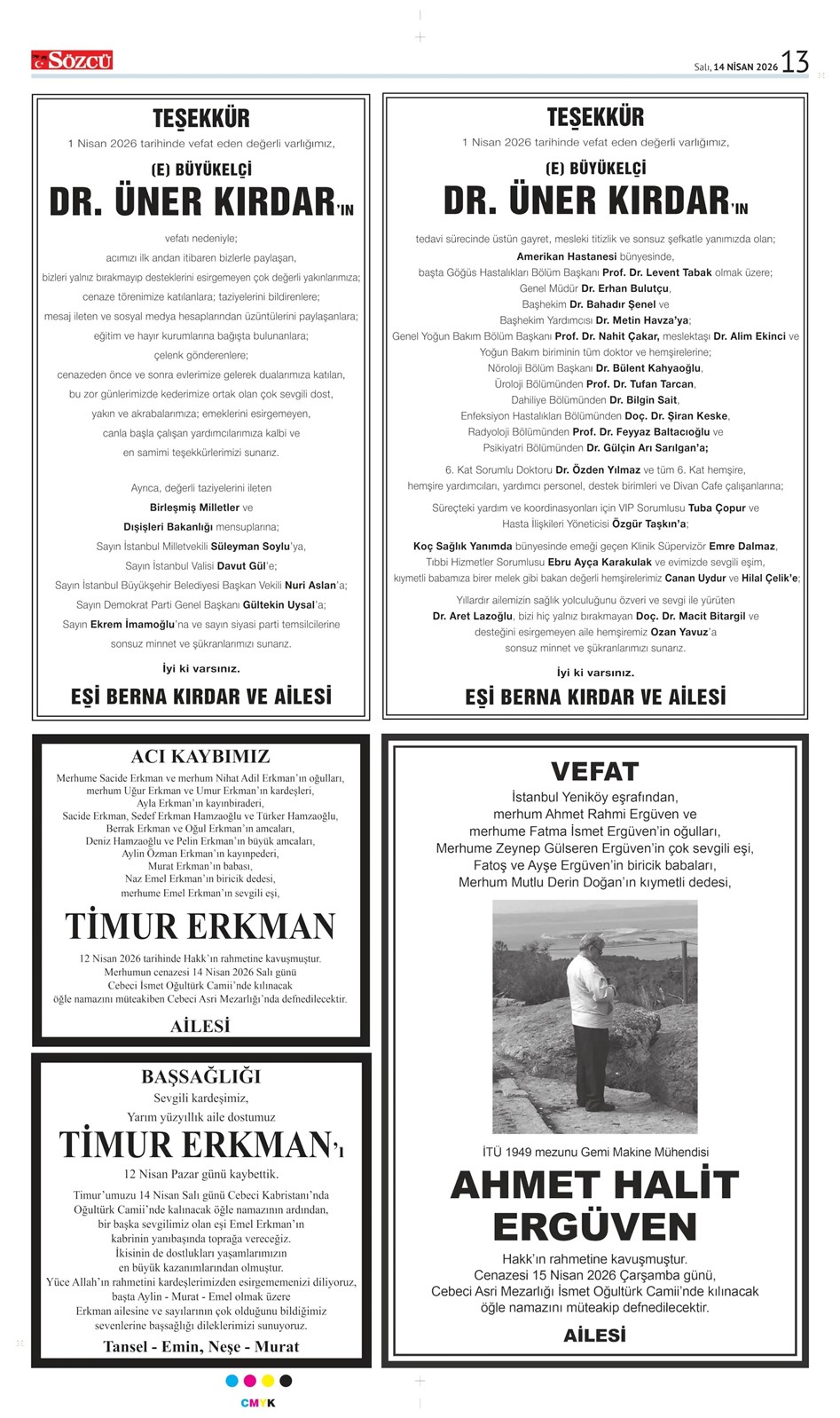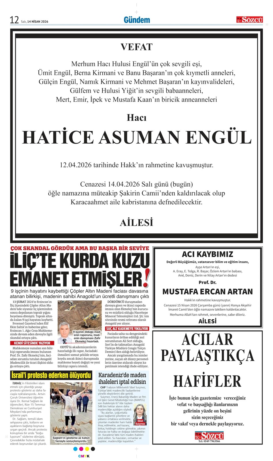 Etiketlendi Ahmet Halit Ergüven Vefat İlanı, Anma İlanı, Başsağlığı İlanı, gazeteve ölüm ilanı ver, Gazeteye Vefat İlanı Vermek, Hatice Asuman Engün Vefat İlanı, Mevlid İlanı, Mustafa Ercan Artan Vefat İlanı, Sözcü Gazetesi İlan Servisi, Sözcü Gazetesi İletişim, Sözcü Gazetesi Ölüm İlanı, Sözcü Gazetesi Vefat İlanı, Sözcü Gazetesine Vefat İlanı Vermek, sözcü vefat, Timur Erkman Vefat İlanı, Üner Kırdar Teşekkür İlanı, Vefat İlanı, Vefat İlanı Sözcü