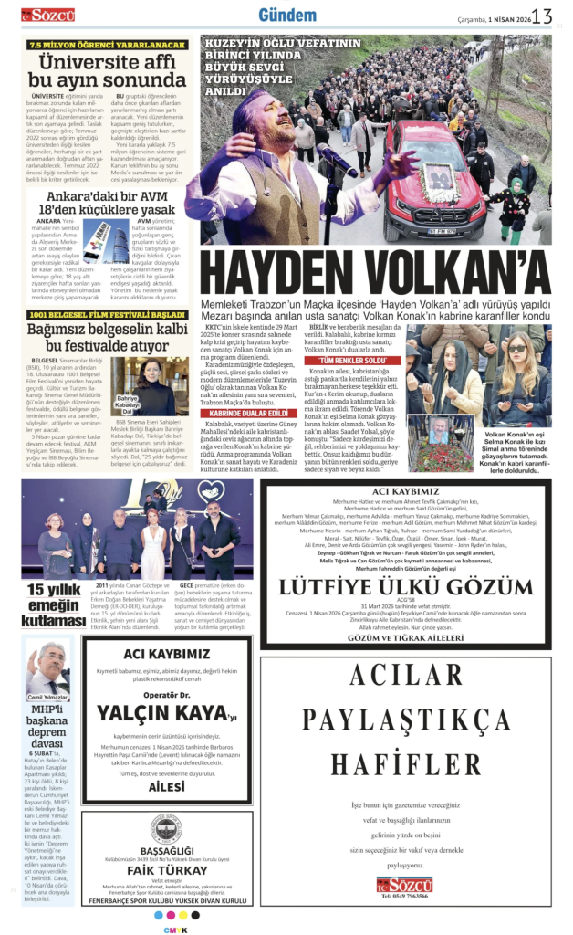Sözcü Anma İlanı
