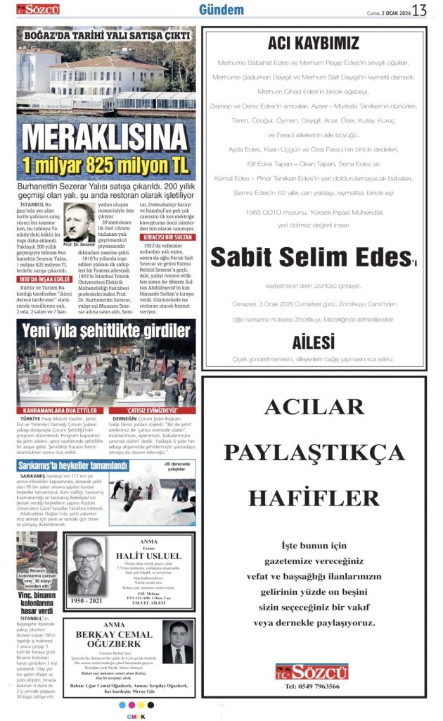 Sözcü Vefat İlanı