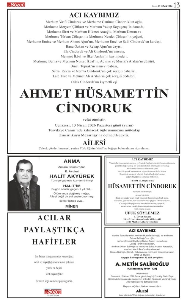 Etiket: Sözcü Gazetesi Ölüm İlanı